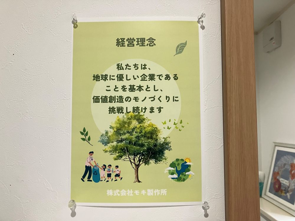 写真は社内に掲示された企業理念。こういう機会に見返すと、はっとさせられます