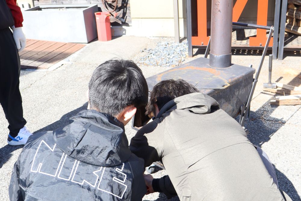 工場見学のあとは、薪ストーブメーカーならではの体験を。