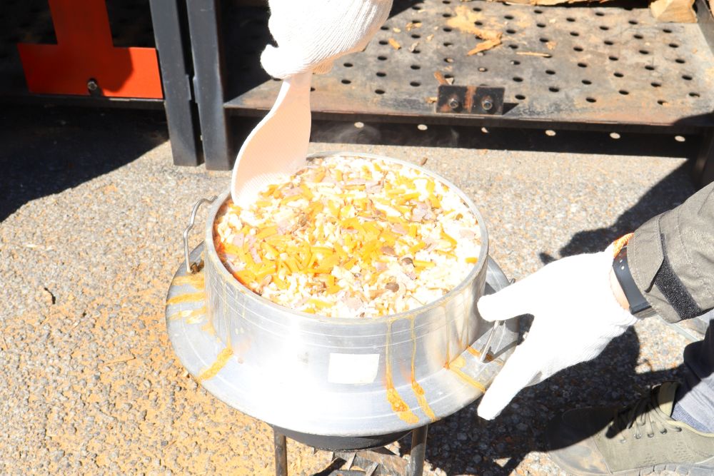 季節外れの暖かさと好天にも恵まれ、炊き込みご飯は大成功。