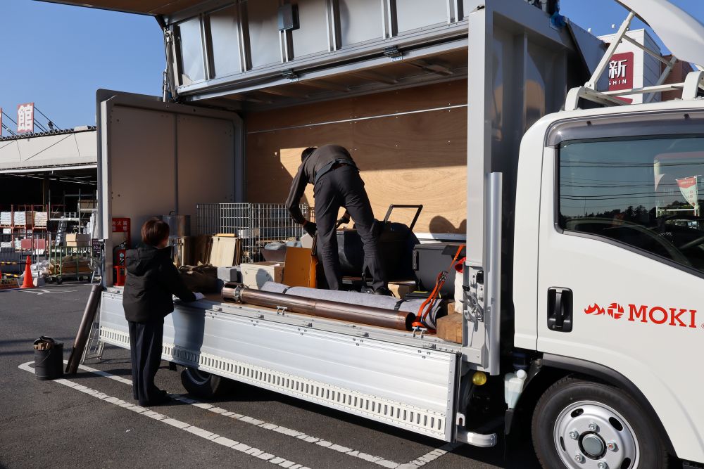 エネルギー全開の営業Mさんにビシビシ指示を飛ばされつつ、あたふたと備品を下ろす私。(写真左側)