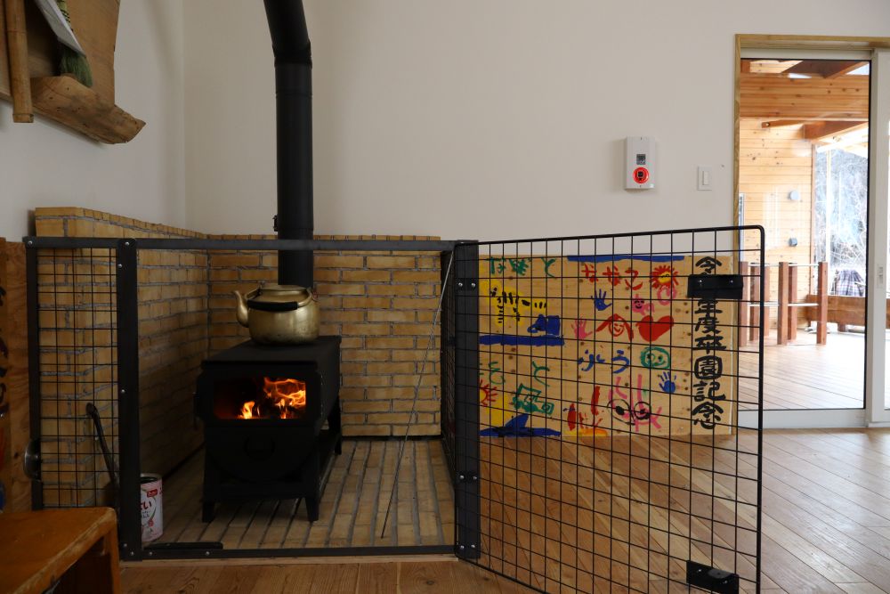 保育室の一角には、長い薪が入るMD120ⅣKがあります。