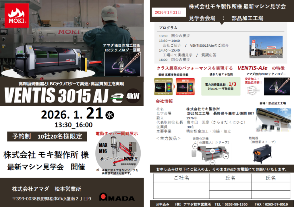 参加をご希望の方は、㈱アマダ 松本営業所様までお申込みください。